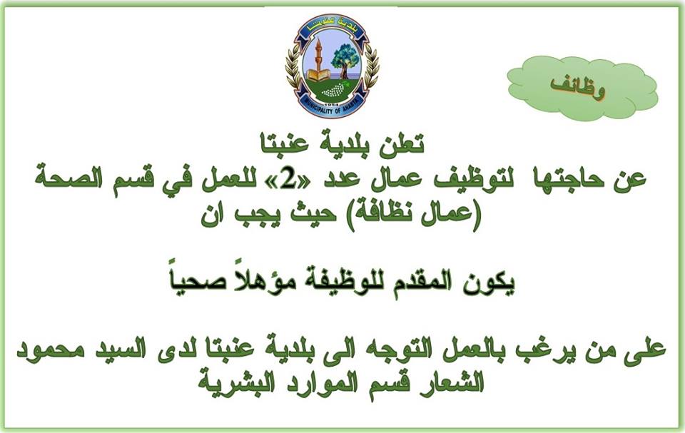 وظيفة في إحدى الشركات الكبرى بنابلس