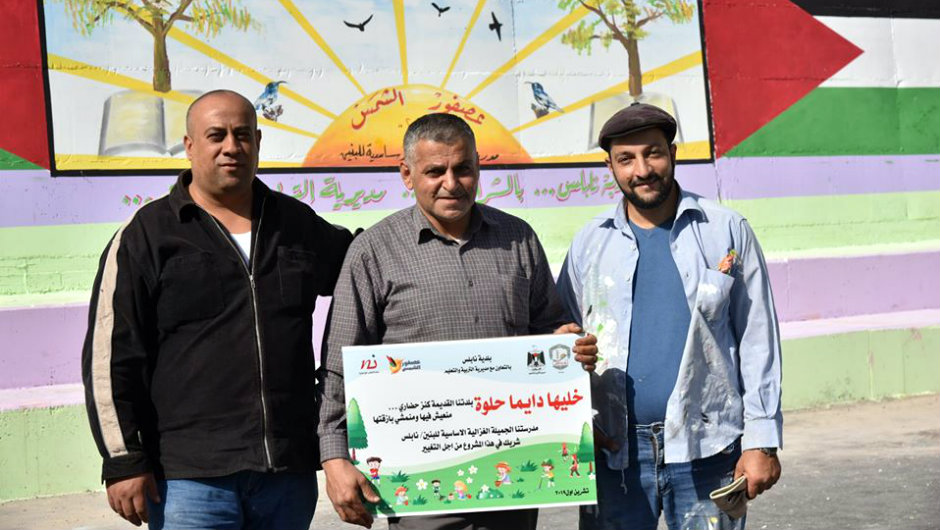 بالصور.. الرسم على جدران مدرسة الغزالية بنابلس