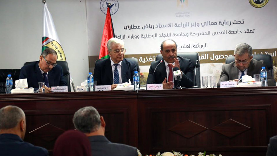 عقدت كلية الزراعة بجامعة القدس المفتوحة، الثلاثاء 12.11.2019، ورشة علمية بعنوان "استخدام محصول علف القوار البقولي في تغذية وتسمين الأغنام"، برعاية وحضور وزير الزراعة رياض عطاري ورئيس الجامعة يونس عمرو وبالشراكة مع جامعة النجاح.
