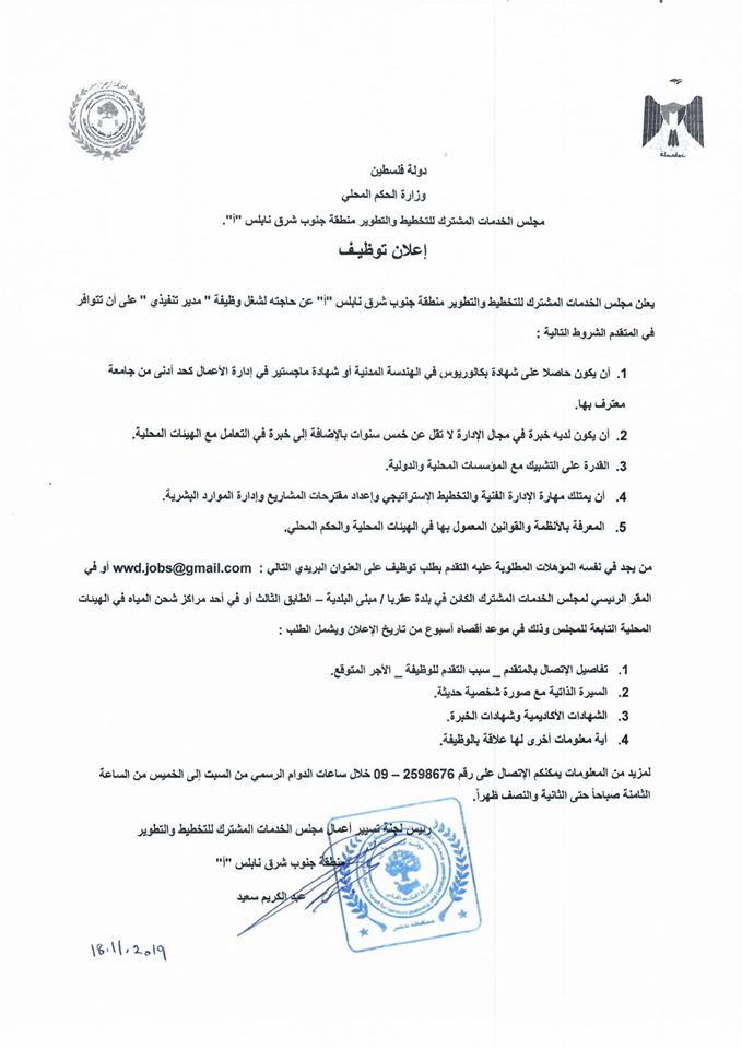 نابلس... وظيفة في مجلس الخدمات المشترك