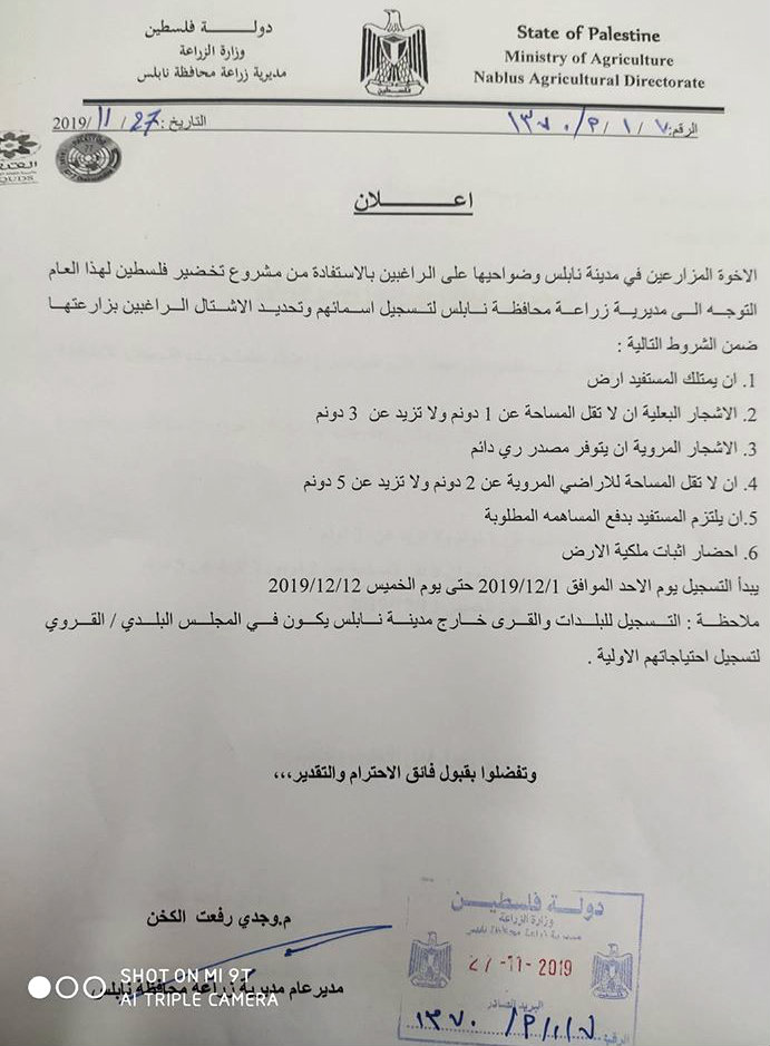 نابلس.. بدء التسجيل بمشروع تخضير فلسطين