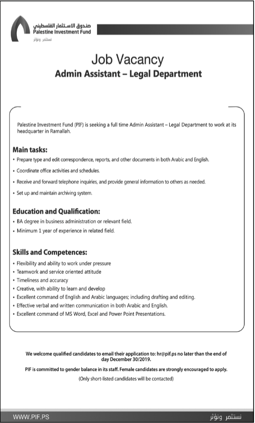 مطلوب مساعدة في صندوق الاستثمار الفلسطيني