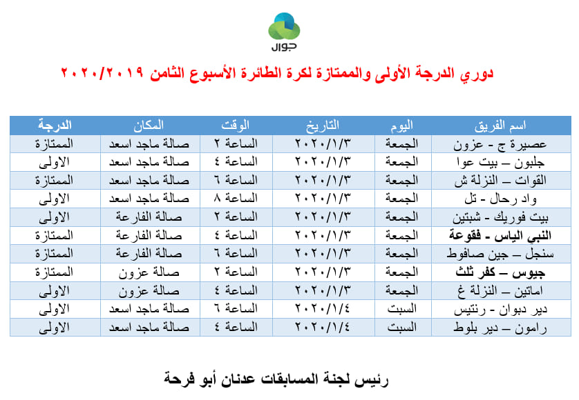 الاتحاد الفلسطيني لكرة الطائرة ينشر مباريات الأسبوع الثامن من دوري الدرجة الأولى 2019/2020.