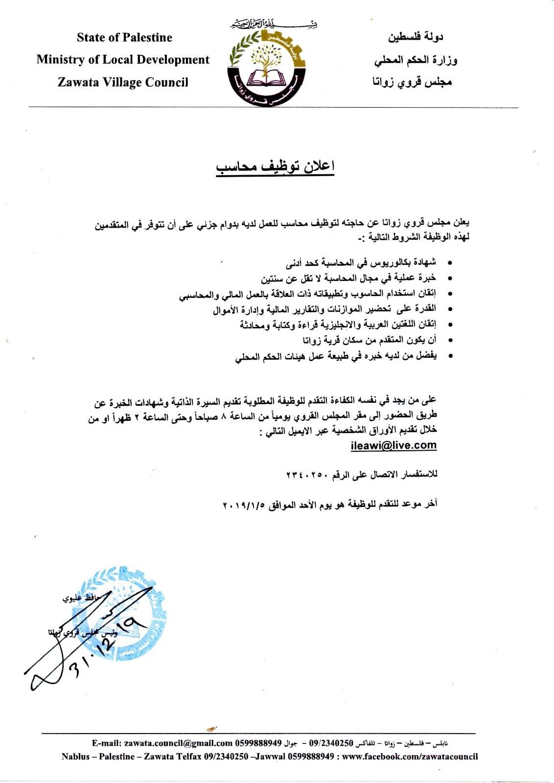 وظيفة شاغرة في مجال المحاسبة