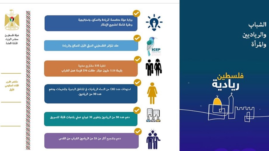 مجلس الوزراء الفلسطيني ينشر تقرير الأداء الحكومي الأول فيما يخص الشباب والرياديين والمرأة.