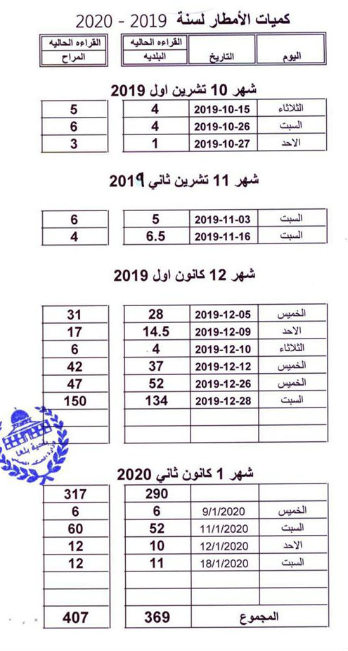 بلدية بلعا تنشر كمية الأمطار الهاطلة على البلدة منذ بداية الموسم المطري.