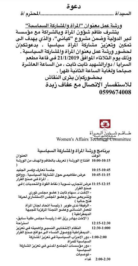 طولكرم.. ورشة المرأة والمشاركة السياسية