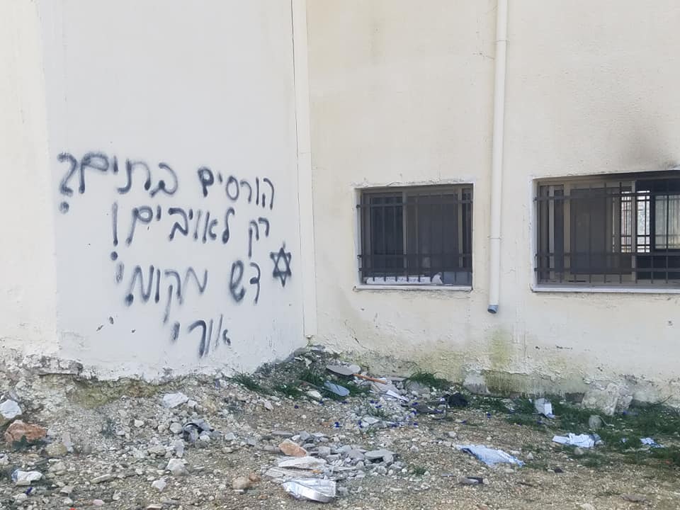 أحرق مستوطنون، فجر الثلاثاء 28.01.2020، صفا مدرسيا في مدرسة عينابوس الأساسية جنوب نابلس.