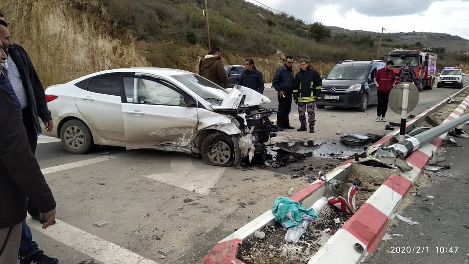 تعاملت طواقم الدفاع المدني في محافظة طولكرم، السبت 01.02.2020، مع حادث سير اصطدام مركبة بعامود كهرباء وسط الطريق في بلدة عنبتا شرق المحافظة، حيث نتج عنه إصابة ثلاثة مواطنين.