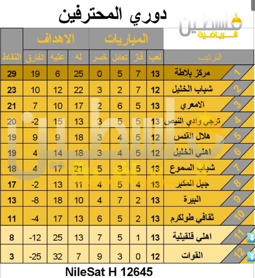 وقد نجح شباب بلاطة بالحفاظ على صدارة الدوري ومبتعداً عن شباب الخليل بست نقاط وتسعة أهداف.