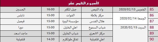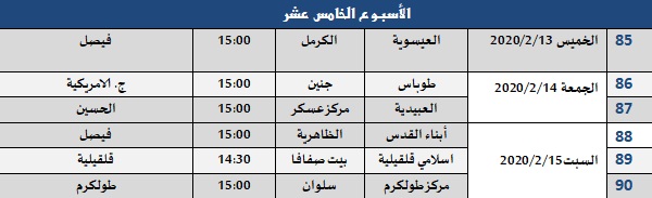 الاتحاد الفلسطيني لكرة القدم ينشر جدول مباريات الأسبوع الـ15 من دوري المحترفين ودوري الدرجة الأولى وبلاطة الأول سيقابل القوات الأخير في ترتيب الدوري.