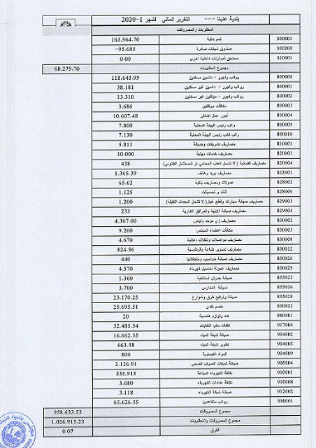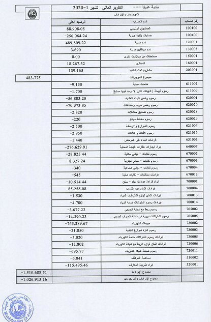 بلدية عنبتا تنشر تقريرها المالي لشهر يناير من عام 2020.