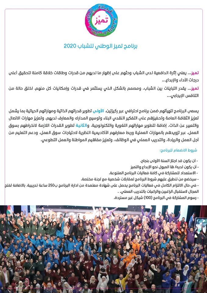 جامعة النجاح تعلن عن بدء الالتحاق في برنامج تميز للشباب لعام 2020.