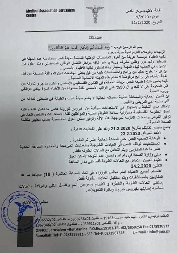 نقابة الأطباء تصدر بياناً يوضح فعالياتها الاحتجاجية رداً على تجاهل الحكومة لمطالبها.