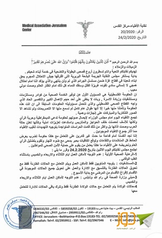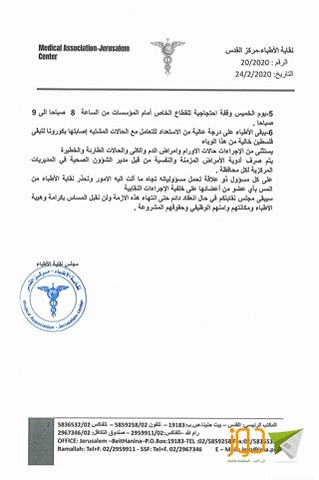 6- يبقى الأطباء على درجة عالية من الاستعداد للتعامل مع الحالات المشتبه إصابتها بكورونا لتبقى فلسطين خالية من هذا الوباء
