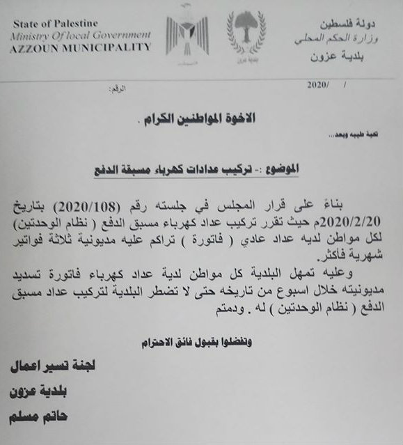 بلدية عزون تصدر قرارا بتركيب عدادات كهرباء مسبقة الدفع وتدعو إلى تسديد المديونية المتراكمة على بعض المواطنين.
