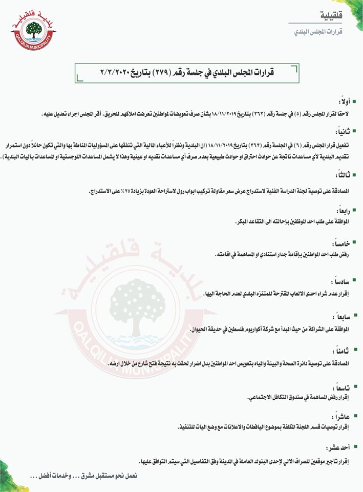 قرارات المجلس البلدي في قلقيلية