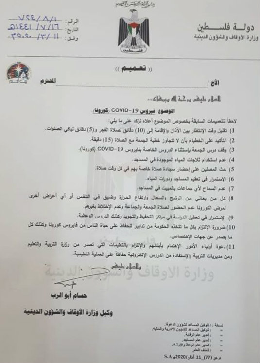 وزارة الأوقاف تنشر تعميما بخصوص خطبة الجمعة للوقاية من كورونا.