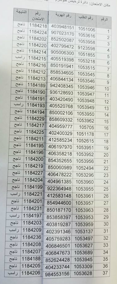مديرية النقل والمواصلات في طولكرم تنشر نتائج امتحان السياقة العملي.