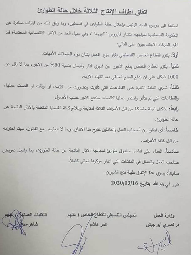 وزارة العمل والقطاع الخاص واتحاد نقابات العمال يوقعون اتفاقية تقضي بالتزام القطاع الخاص بقرار يخص دوام الأمهات العاملات ودفع الأجور.