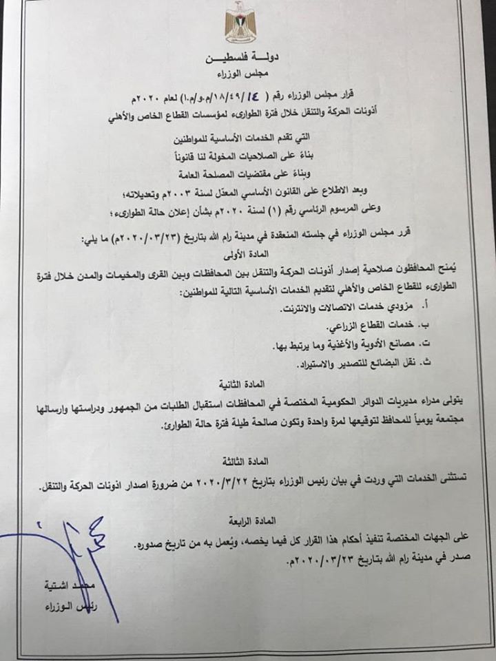 قرارات بخصوص أذونات الحركة خلال الطوارئ
