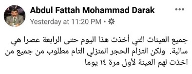 وجاء الإعلان على الصفحة الشخصية لمدير الصحة.
