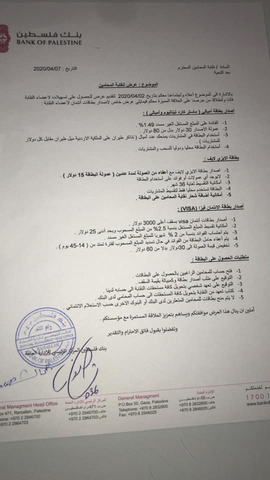 سادسا: فيما يتعلق بخيارات اللجوء الى البنوك وبعد تواصل مجلس النقابة مع عدة بنوك والحصول على العروض ومناقشتها واستنادا الى توصية اللجنة المالية في النقابة فقد توصلنا الى ما يلي: