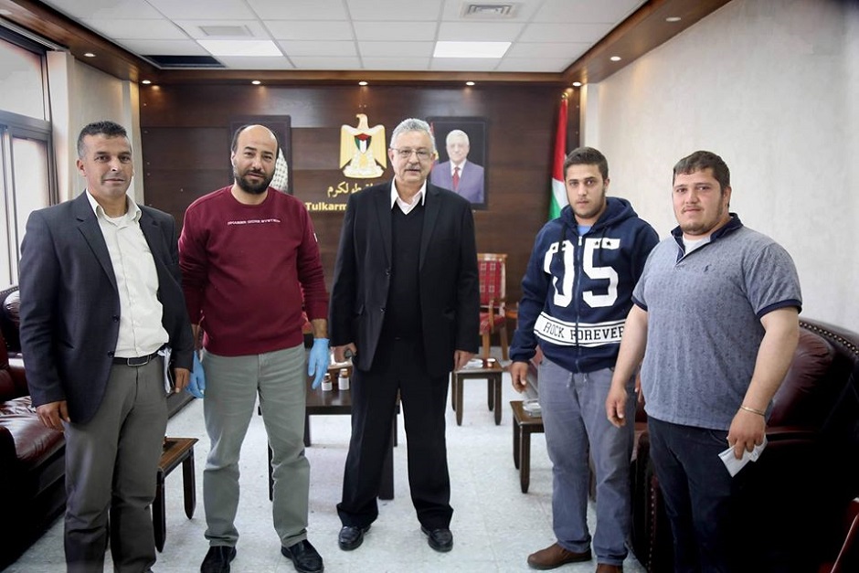 محافظ طولكرم عصام أبو بكر يستقبل عددا من مربي النحل والذين تبرعوا بتقديم العسل لمراكز الحجر الصحي والعلاج من فيروس كورونا.