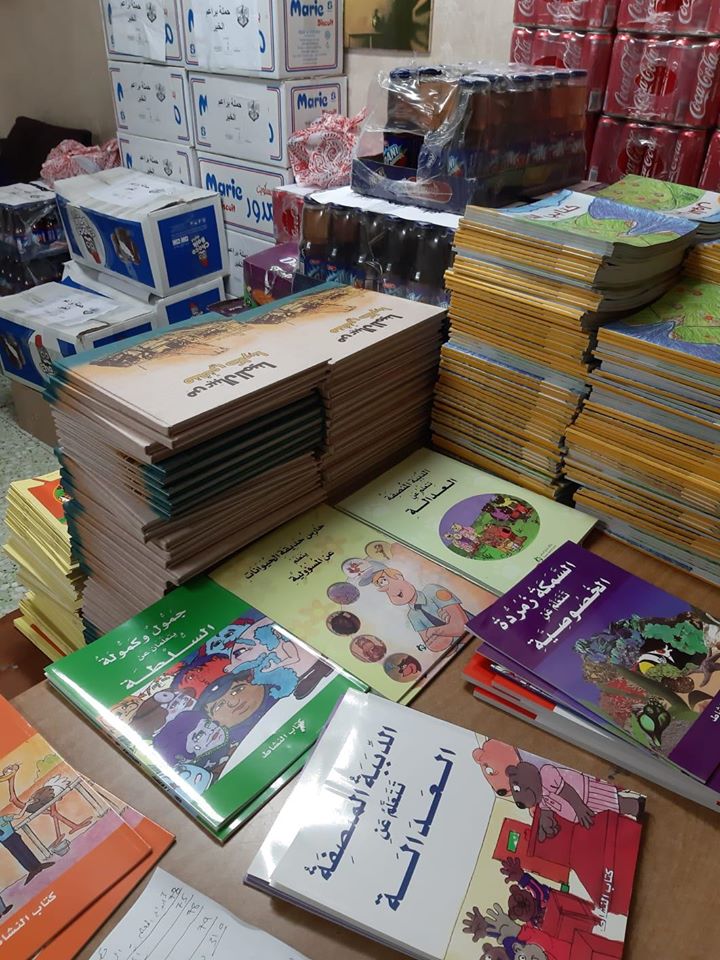 حملة براعم الخير تسلّم ألفا وثمانين حزمة تثقيفية للأطفال والتي اشتملت قصصا من تأليف أطفال فلسطين قدمتها مؤسسة تامر للتعليم المجتمعي.