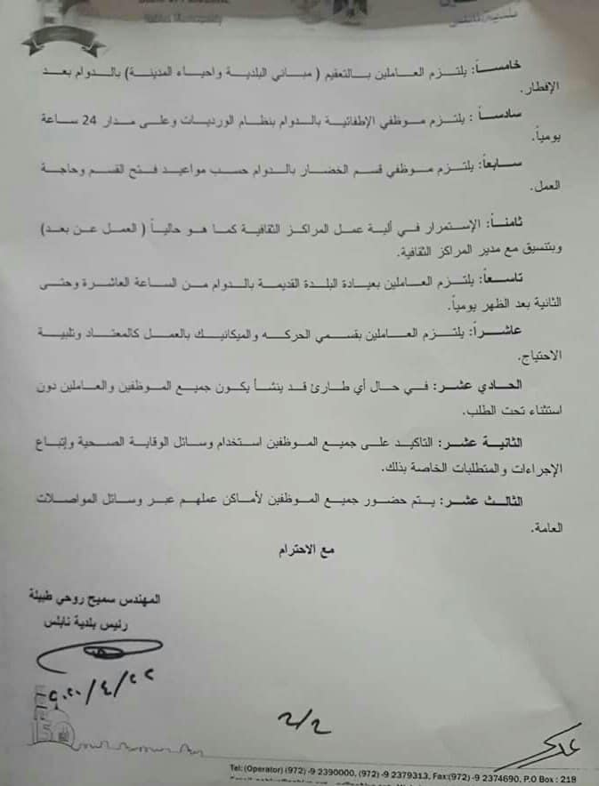 نقابة العاملين في بلدية نابلس تنشر آلية دوام الموظفين خلال شهر رمضان.