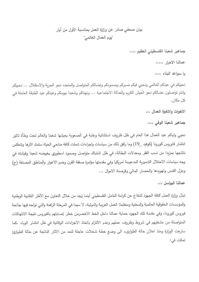 إستراتيجة وزارة العمل بمناسبة يوم العمال العالمي