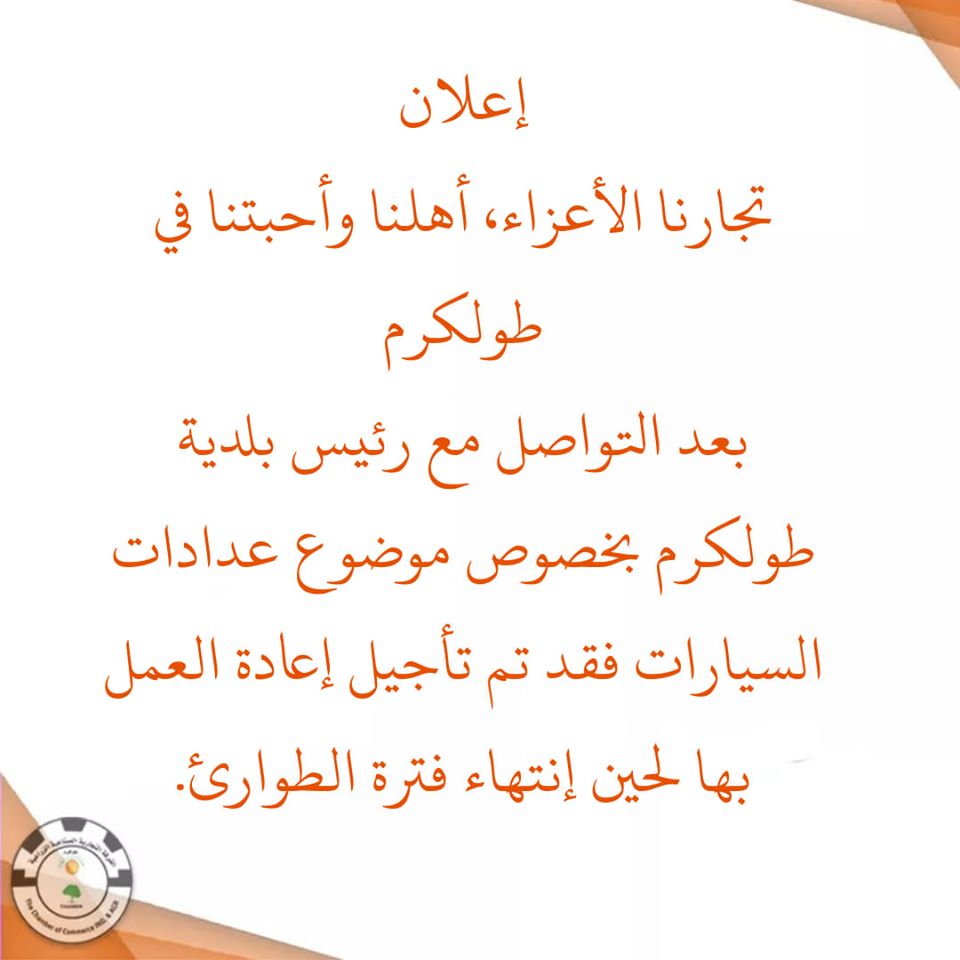 المصدر: الغرفة التجارية الصناعية الزراعية طولكرم