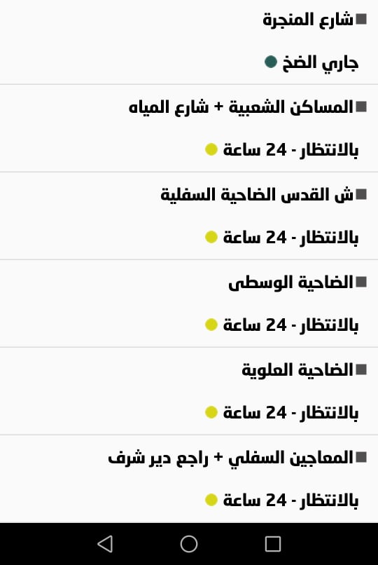 جدول توزيع المياه في نابلس
