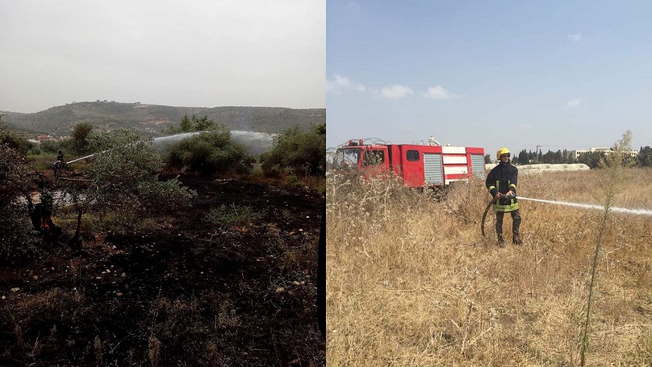 أخمدت طواقم الدفاع المدني، الأربعاء 27.05.2020، 15 حريقا في محافظة جنين، التهمت 1200 شجرة زيتون وأشجاراً حرجية، ودونمين من محصول قمح.