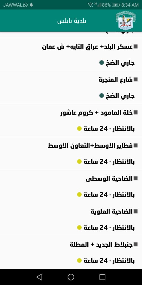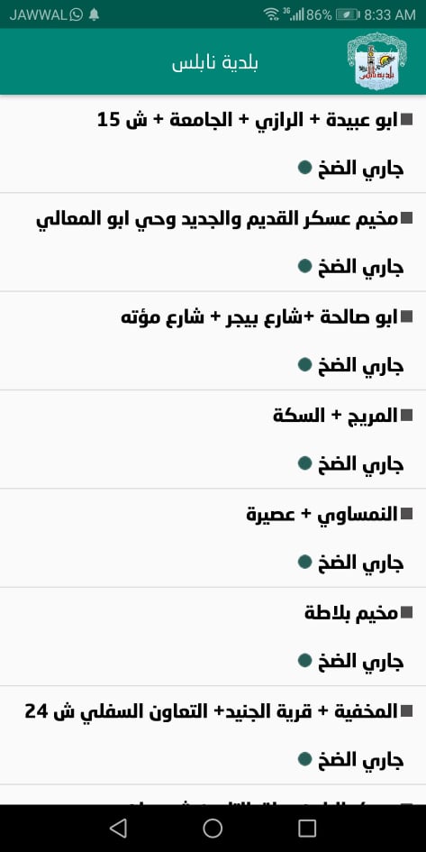 7. بلدية نابلس: جدول توزيع المياه