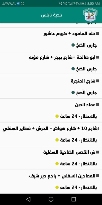 7. بلدية نابلس: جدول توزيع المياه