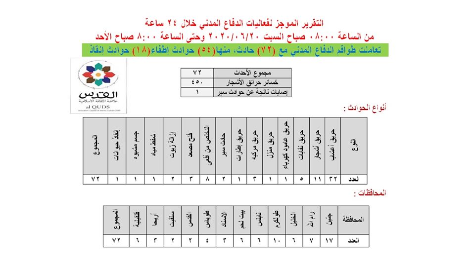 الدفاع المدني ينشر تفاصيل القضايا التي تعامل معها خلال الـ24 ساعة الماضية.