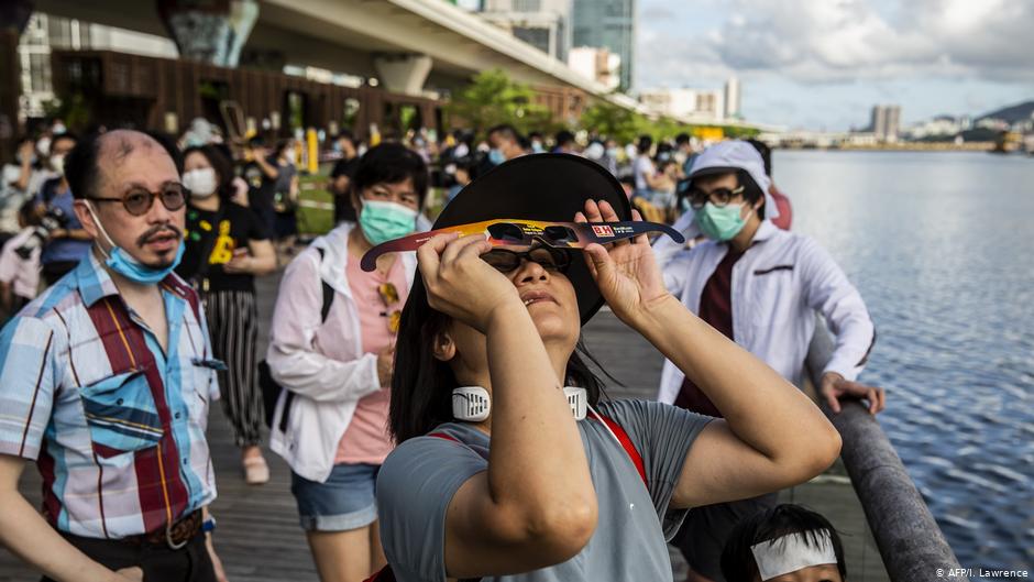 تمكن شغوفون بعلم الفلك الأحد (21 حزيران/يونيو 2020) من مشاهدة ظاهرة "حلقة النار" وهي كسوف نادر للشمس على طول شريط ضيق يمتد من غرب إفريقيا إلى شبه الجزيرة العربية مرورا بالهند والشرق الأقصى.