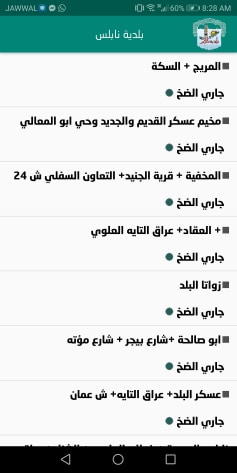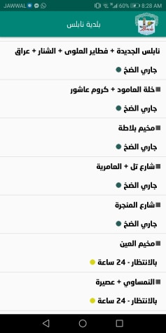 جدول توزيع المياه في نابلس