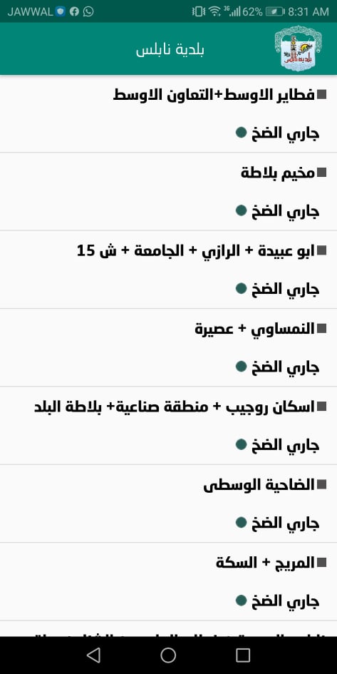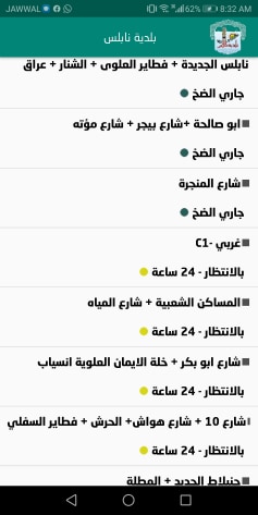 7. بلدية نابلس: جدول توزيع المياه