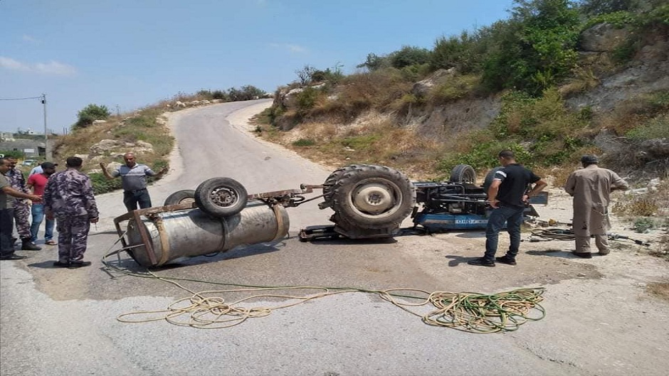 إنقاذ مواطن بعد انقلاب جراره شمال طولكرم