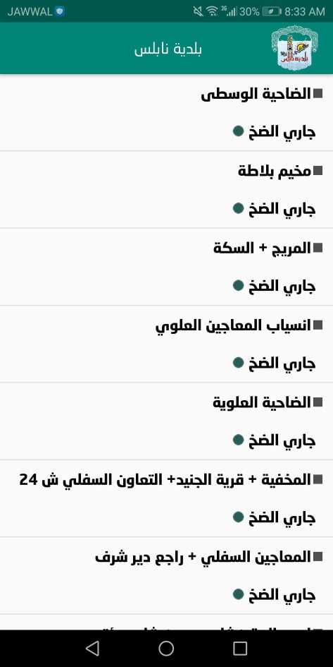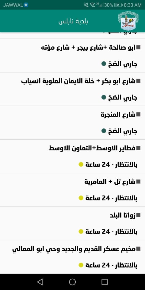 جدول توزيع المياه في مدينة نابلس وضواحيها ليوم الأحد 12.07.2020.