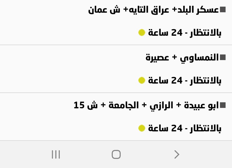 جدول توزيع المياه في نابلس