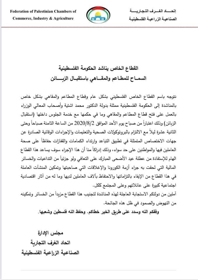 القطاع الخاص يناشد بالسماح باستقبال الزبائن في المطاعم