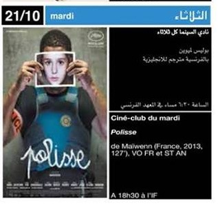 دعوة من المعهد الفرنسي في نابلس لحضور فيلم "بوليس" الفرنسي - مترجم للإنجليزية الساعة 6:30 في المعهد، يوم الثلاثاء 21.10.2014 شارع النجاح القديم