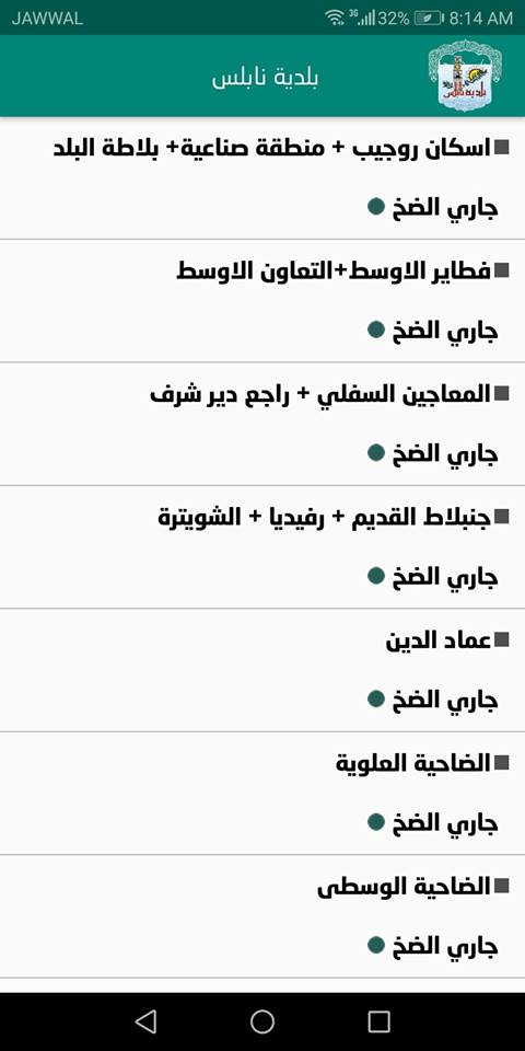 15. بلدية نابلس: جدول توزيع المياه