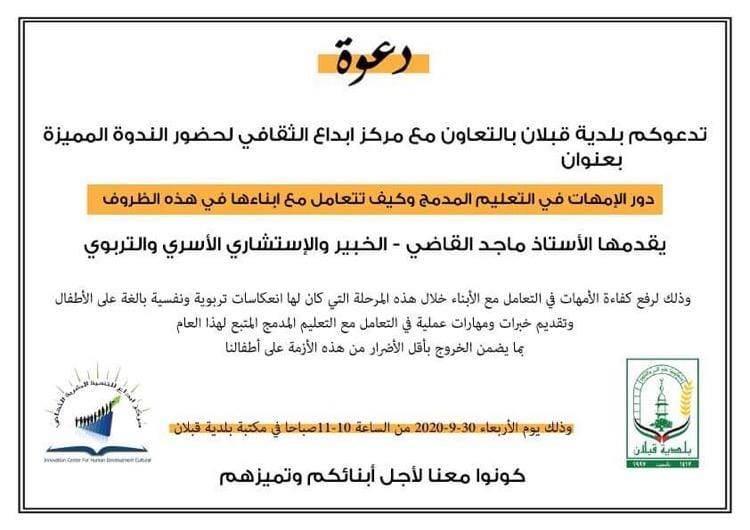 قبلان.. لقاء حول دور الأمهات في التعليم المدمج