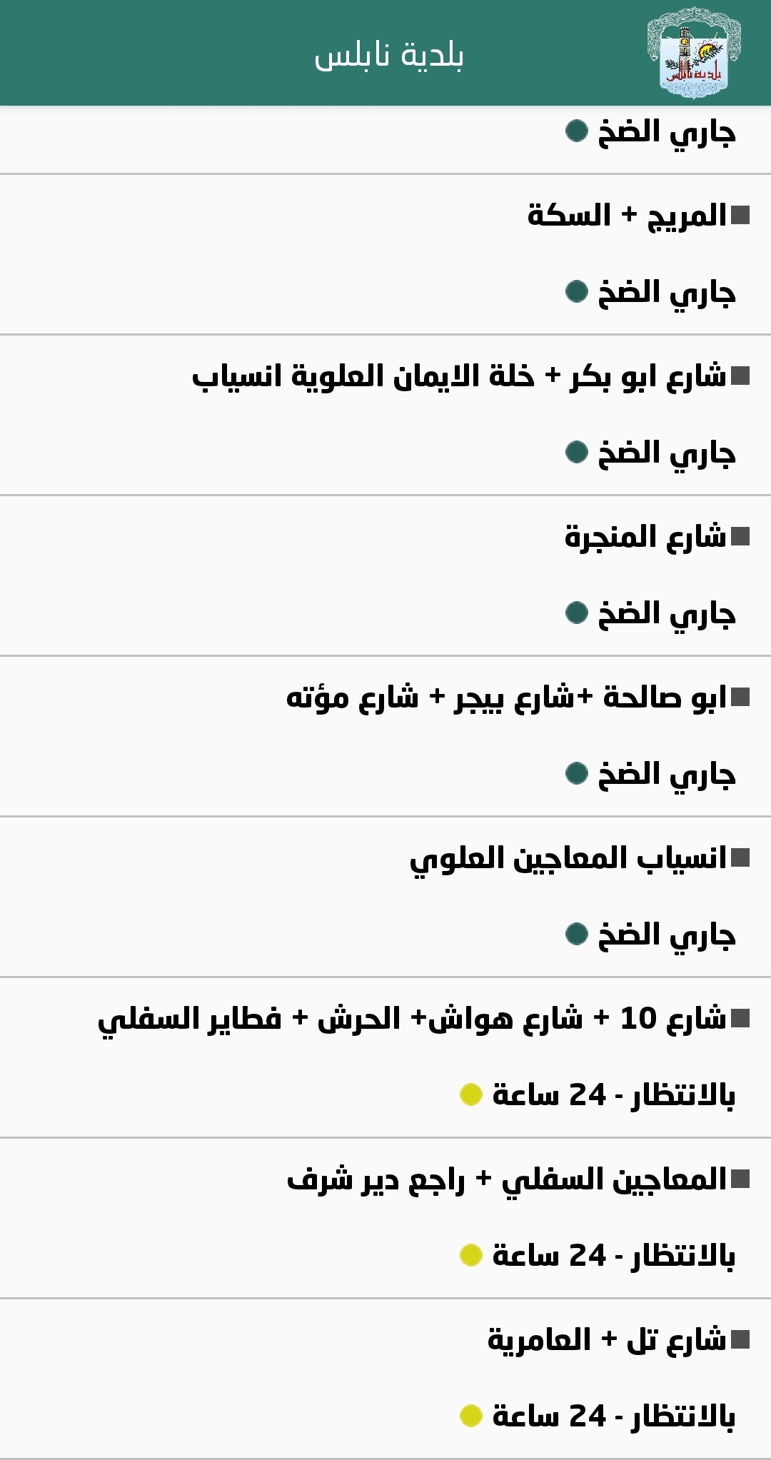 جدول توزيع المياه في نابلس
