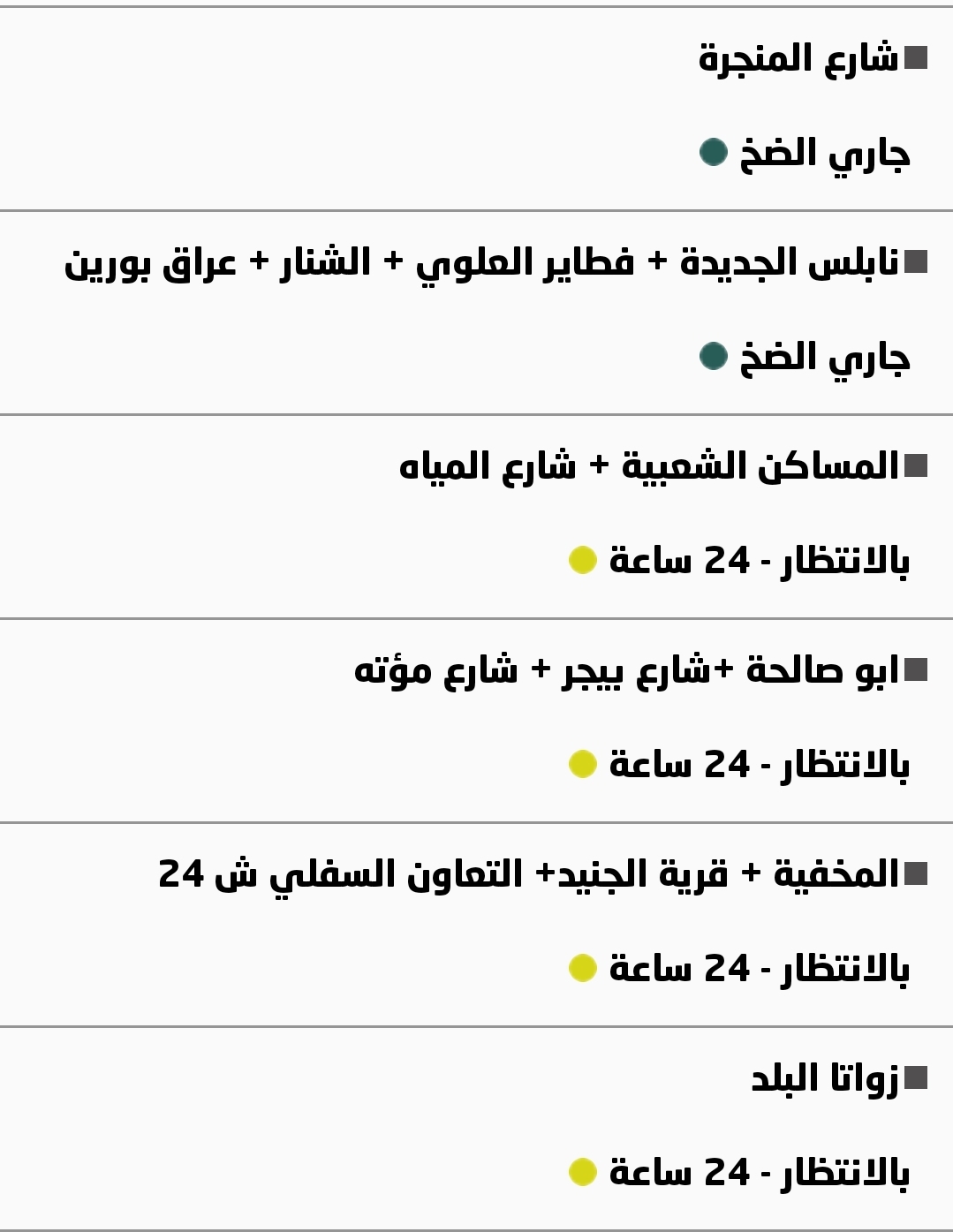 جدول توزيع المياه في نابلس
