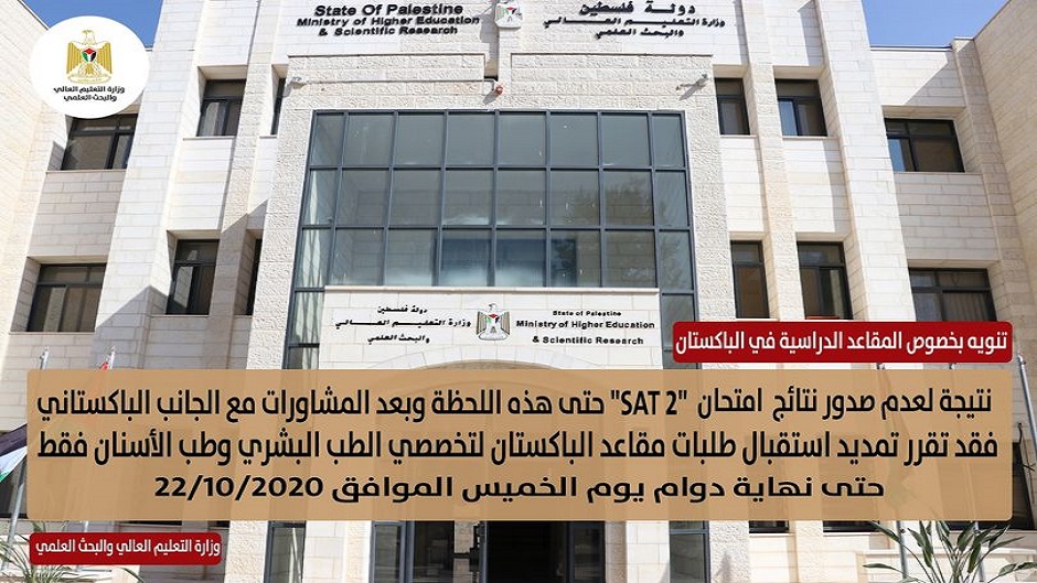آخر موعد لاستقبال طلبات مقاعد الباكستان لتخصصي الطب البشري وطب الأسنان حتى نهاية دوام الخميس 22.10.2020.